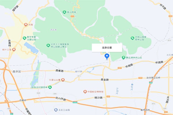 从八达岭长城出发,向西南方向行驶进入G6辅路,沿环岛进入京藏高速公路,从G110出口离开进入G6辅路,驶入政府街后,再从象房路方向右转行驶,也可到达龙泉公墓。